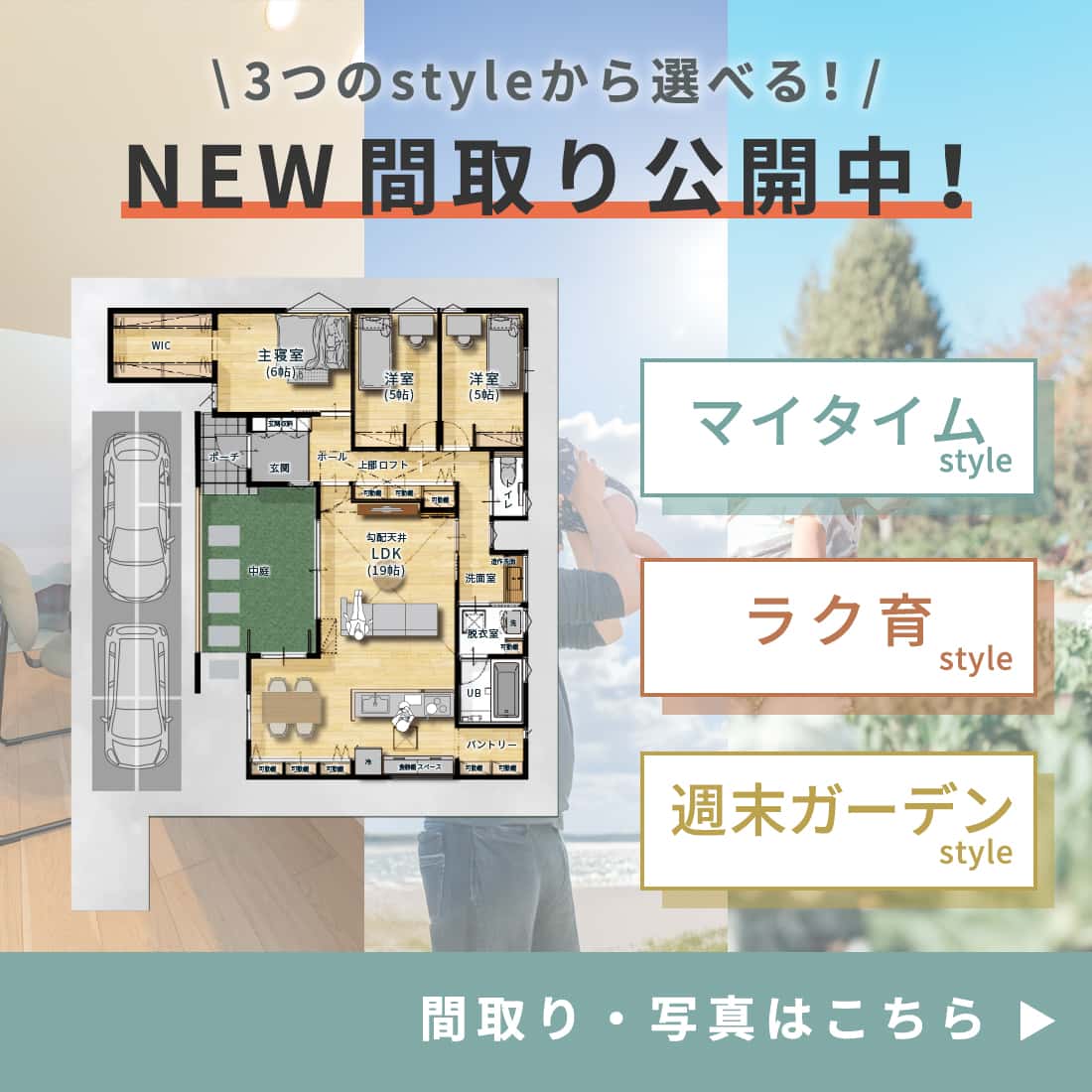 今なら、3つの暮らしのスタイルの平屋を見比べてご見学いただけますので、ぜひお気軽にご来場ください。