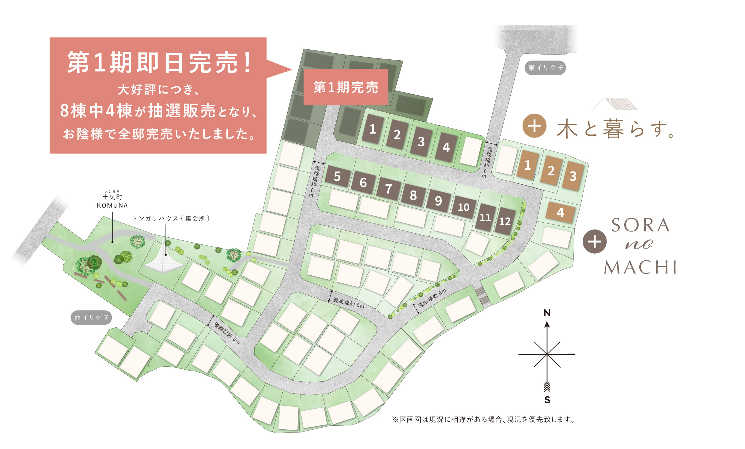 8棟中4棟は抽選販売となり、お陰様で即日完売となりました。沢山のお問いわせ、誠にありがとうございました。