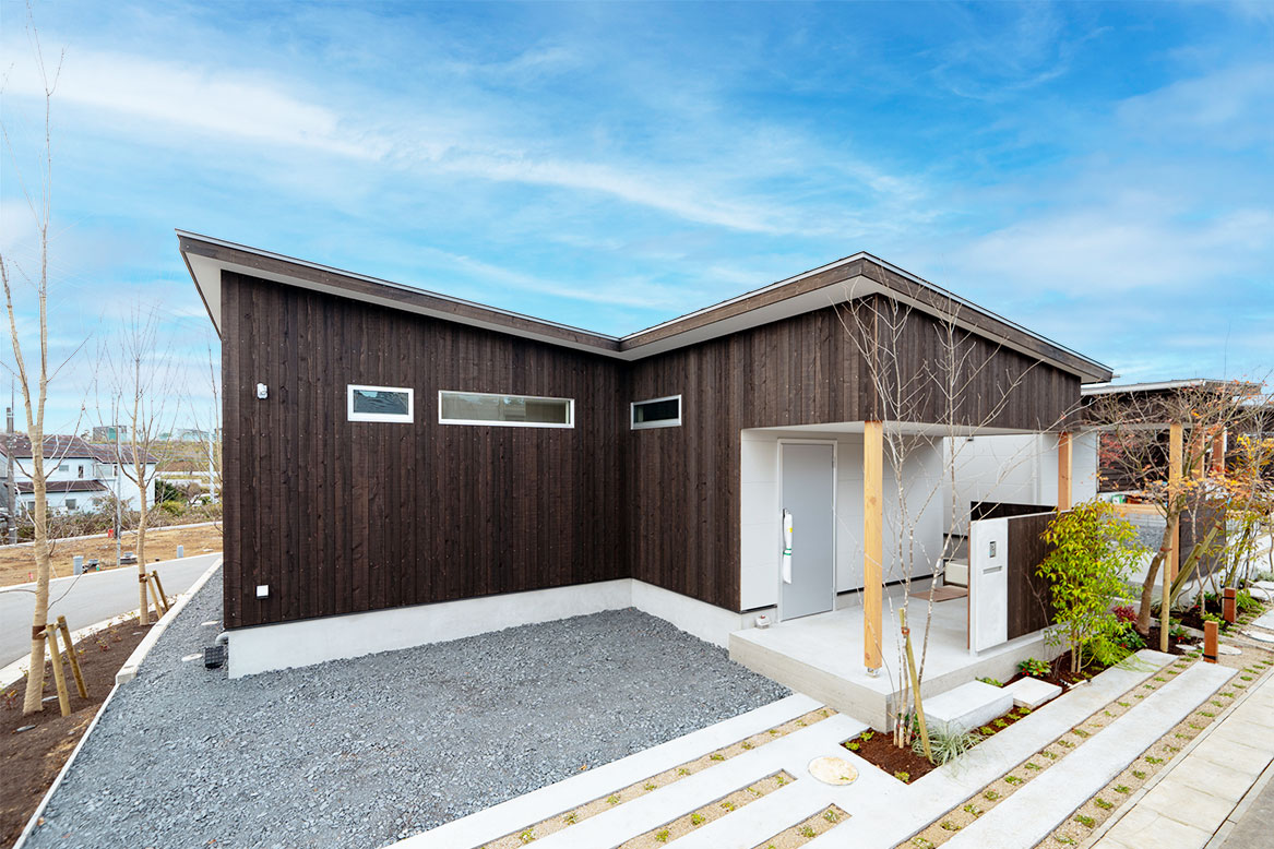 全77邸の中でも街のはじまりを彩る、やさしい佇まいの平屋限定4邸。木の香りと質感に癒される住まいがここにあります。