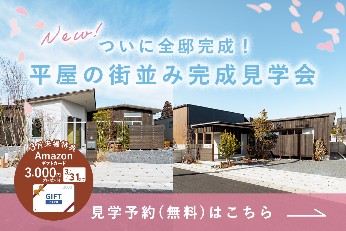 完成したばかりの平屋を見学できるのは”今だけ”となっておりますので、少しでもご興味のある方はお早めにご来場くださいませ!