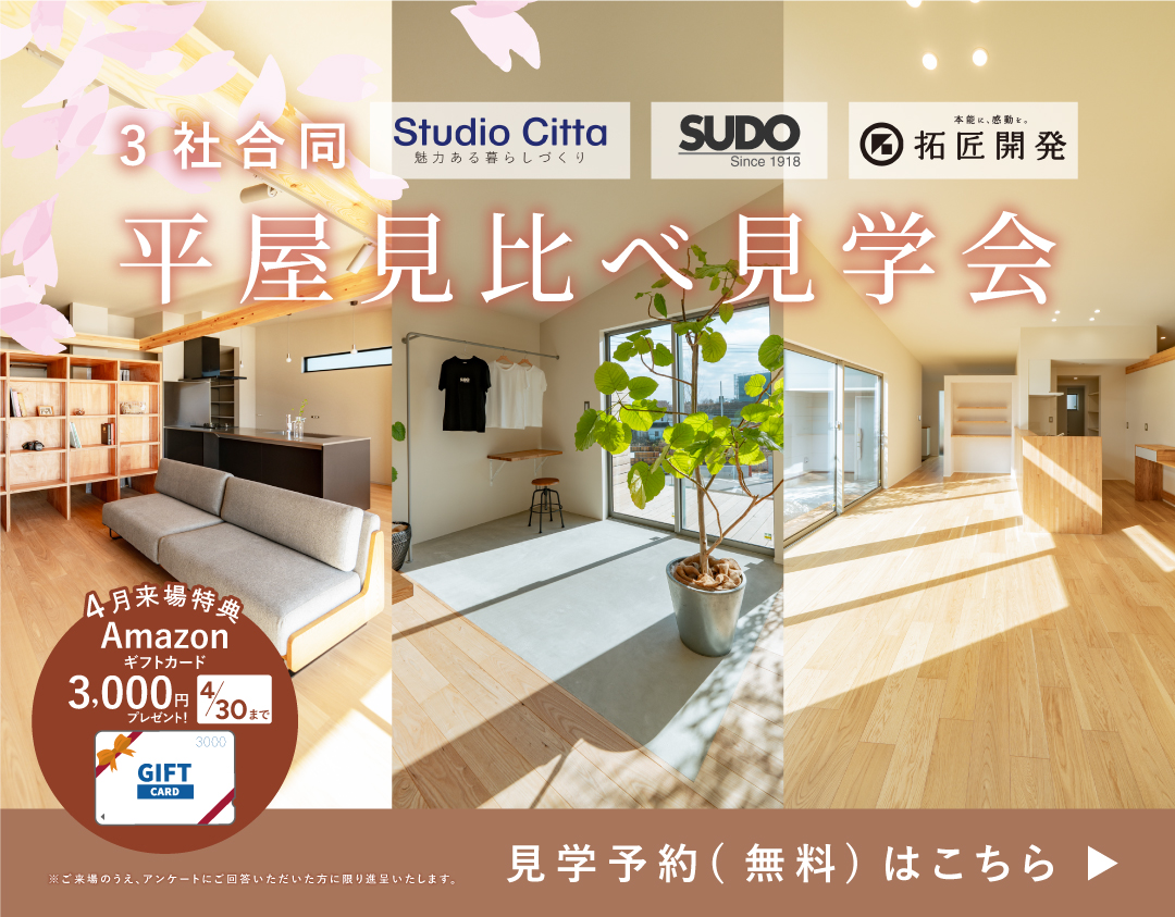 PLAN3ご成約、PLAN8,9お申込、PLAN7,5が商談中になりました。誠にありがとうございます! お好みの平屋をお選びいただけるのは”今だけ”となっております。 連日沢山のお問い合わせをいただいているため、少しでもご興味のある方は1日でも早いご予約をおすすめいたします。 ご家族揃って来場し、美しい平屋の街をご体感ください♪